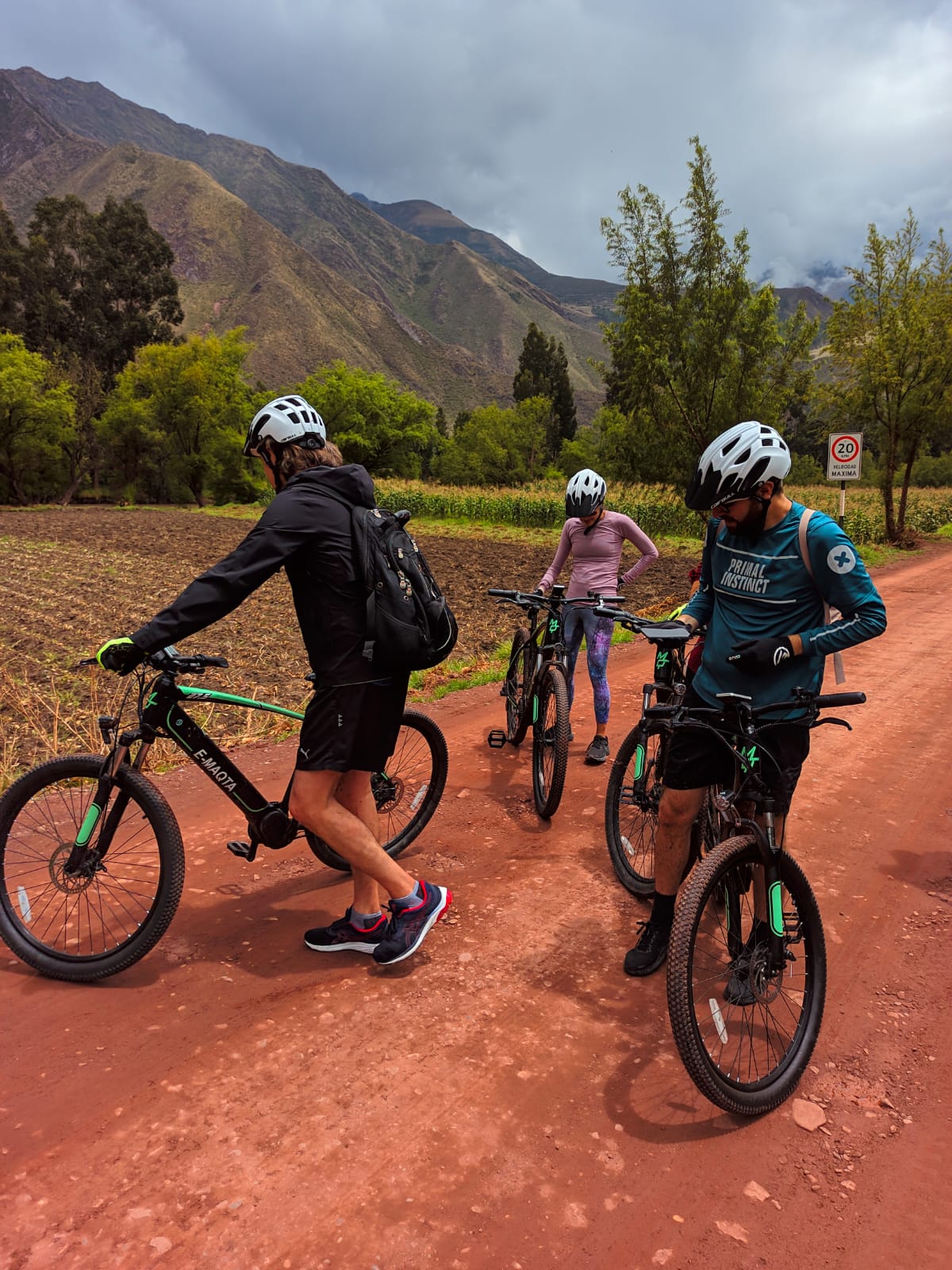 Saliendo de Cusco o Saliendo de Urubamba, inicialmente nos dirigimos en auto hasta la localidad de Huatata, este poblado está a 30 minutos en carro desde Urubamba, o 45 minutos en carro desde Cusco, luego empezamos con la experiencia en bicicleta, Huatata está muy cerca al lago de Huaypo. Por diferentes senderos llegamos hasta Moray. si el pasajero desea ingresar a el centro arqueológico le recomendamos llevar efectivo en soles para pagar los derechos de ingreso o realizar previamente la compra del boleto turístico. Posteriormente nos dirigimos a el poblado de Maras y a las salineras. Hacer todo este recorrido toma un aproximado de 4,5 horas terminando en Salineras.