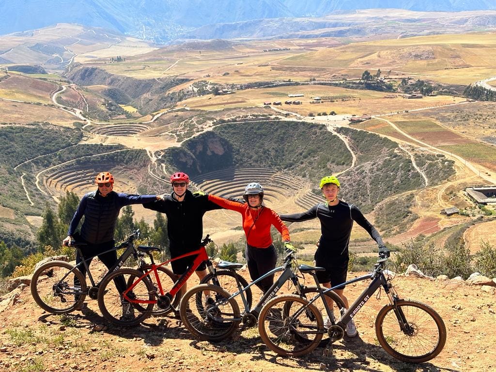 Saliendo de Cusco o Saliendo de Urubamba, inicialmente nos dirigimos en auto hasta la localidad de Huatata, este poblado está a 30 minutos en carro desde Urubamba, o 45 minutos en carro desde Cusco, luego empezamos con la experiencia en bicicleta, Huatata está muy cerca al lago de Huaypo. Por diferentes senderos llegamos hasta Moray. si el pasajero desea ingresar a el centro arqueológico le recomendamos llevar efectivo en soles para pagar los derechos de ingreso o realizar previamente la compra del boleto turístico. Posteriormente nos dirigimos a el poblado de Maras y a las salineras. Hacer todo este recorrido toma un aproximado de 4,5 horas terminando en Salineras.